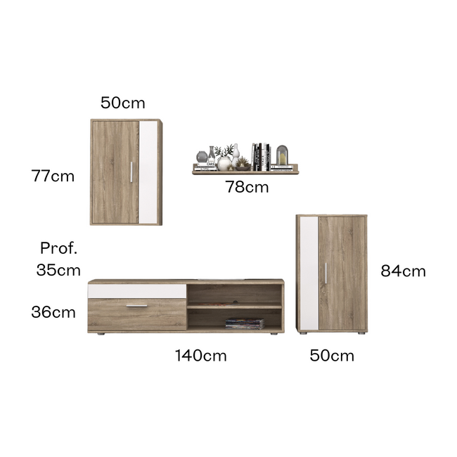 Mueble de televisión modular. Incluye 3 mobiliarios de gavetas y una repisa.