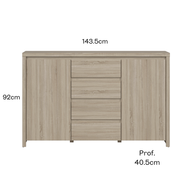 Fabricado en Europa Material: MDF y aglomerado de madera Medidas:  ancho: 143.5cm alto: 92cm profundidad: 40.5cm *Producto entregado desarmado en su caja.