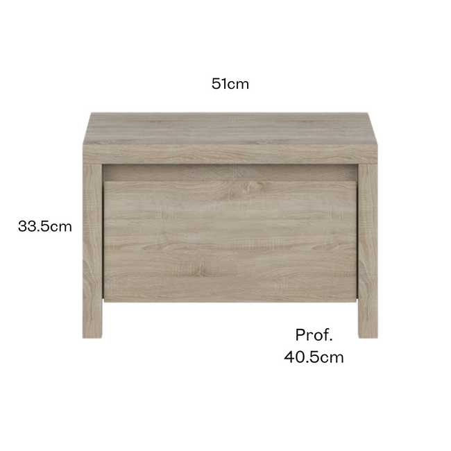 Fabricado en Europa Material: MDF y aglomerado de madera Medidas:  ancho: 51cm alto: 33.5cm profundidad: 40.5cm *Producto entregado desarmado en su caja.